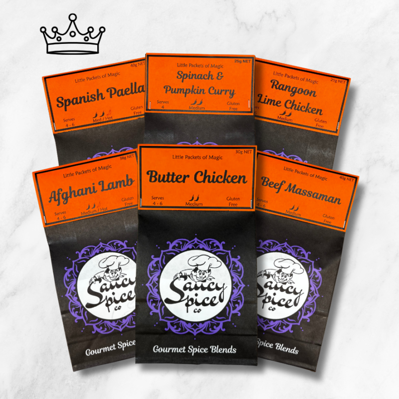 Our Favourite Six box includes the top 6 favourite Saucy Spice dishes ordered by our customers. Enjoy a variety of Saucy Spice blends to have ready in the pantry or to give as a gift.